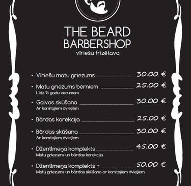 The Beard barbershop ir vīriešu frizētava, kur ikviens vīrietis jutīsies gaidīts un aprūpēts. Šī ir vieta, kur vīrietis var iegūt klasisku matu griezumu, bārdas korekciju vai bārdas skūšanu.